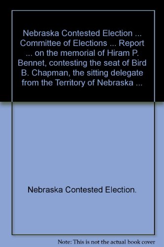PDF Nebraska Contested Election ... Committee of Elections ... Report ... on the memorial of Hiram P. Bennet, contesting the seat of Bird B. Chapman, the sitting delegate from the Territory of Nebraska ... Online EBOOK Download Free (EPUB, PDF, MOBI, MP3) Download here: ... To see more from Lire on , log in or create an account. Log In. or...